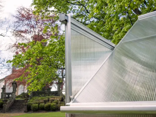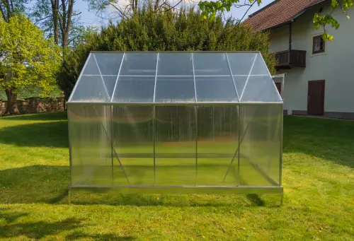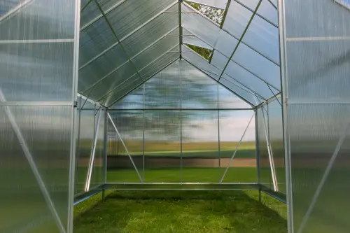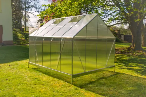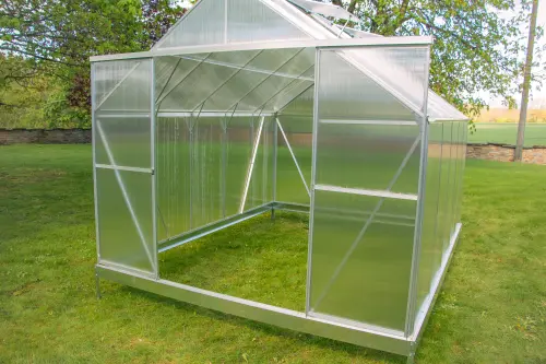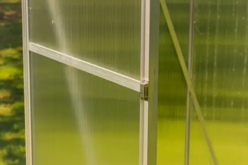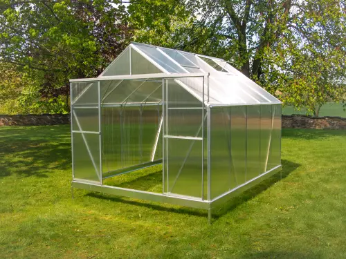 Prémiový hliníkový skleník; plocha 7,8 m2; délka/šířka/výška 310/254/211 cm; posuvné dveře; 2x větrací okénko; pevná hliníková konstrukce; včetně ocelové základny; jednoduchá instalace