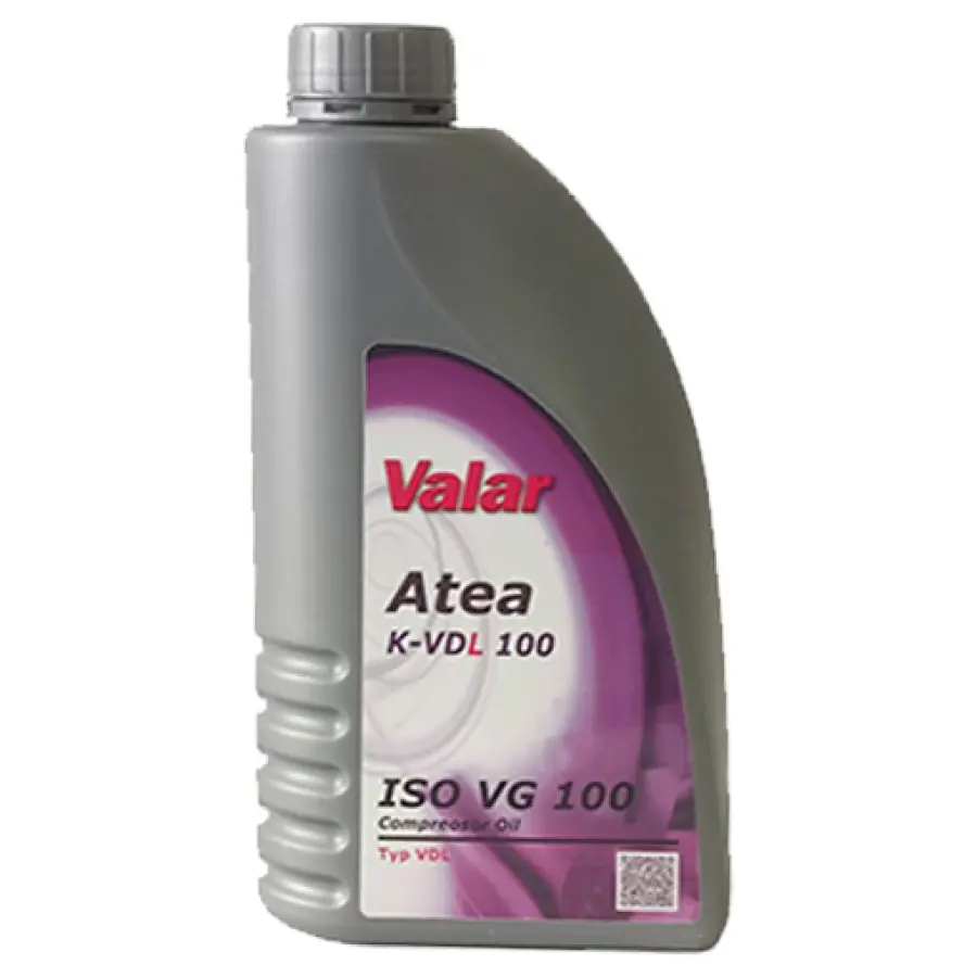 Valar Atea K-VDL100 je vysoce výkonný bezpopelný kompresorový olej na bázi speciálních základových olejů a moderních bezpopelnatých zušlechťujících přísad vysoké kvality. Vyznačuje se nízkým tlakem nasycených par a vysokým bodem vzplanutí.