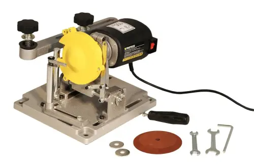 Bruska pilových kotoučů Proteco je vhodná k ostření pilových kotoučů ručních okružních pil, stolních pil a pil na palivové dříví. Součástí brusky pilových kotoučů je diamantový kotouč pro broušení kotoučů s karbidovými plátky a keramický kotouč pro broušení pilových kotoučů z nástrojové oceli. Bruska umožňuje nastavení broušení čelní i zadní strany přímých či střídavě šikmých zubů, což zvyšuje životnost a hospodárnost pilových kotoučů. Brusku pohání jednofázový, asynchronní motor, který zajišťuje tichý, bezúdržbový a bezproblémový chod brusky.