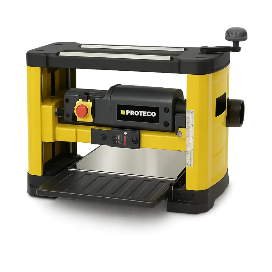 Přenosná protahovačka PROTECO PREMIUM je kompaktní stroj určený k přesnému obrábění deskového i hraněného (hoblovaného) řeziva. Umožňuje snadné opracování lišt, latí prken i hranolů na požadovaný rozměr jedním protažením. Díky své mobilitě je vhodná nejen do profesionálních dílen, ale i pro náročné kutily, kteří vyžadují výkon a spolehlivost. O přesnost se stará jemné nastavení hloubky řezu pomocí otočné kliky s ukazatelem, zatímco automatický posuv obrobku po válcích zajišťuje pohodlnou a plynulou práci.