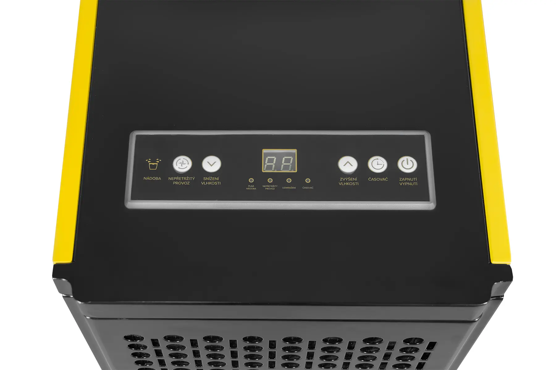 Intuitivní ovládací panel s digitálním displejem umožňuje přesné nastavení cílové vlhkosti v rozsahu 20-90% RH v krocích 5% RH. Kompresor spíná při odchylce ≥ 3% RH, což zajištuje stabilní a efektivní provoz bez zbytečného cyklování. O řízení provozu se stará integrovaný elektronický hygrostat, který automaticky zapíná a vypíná odvlhčovač podle aktuální teploty v místnosti. K dispozici je také režim nepřetržitého provozu, ve kterém zařízení pracuje trvale bez ohledu na aktuální vlhkost. Tento režim je ideální při vysoušení zdiva, zejména vytopení nebo při sanaci stavebních konstrukcí. Odvlhčovač je vybaven pamětí posledního nastavení, takže při výpadku napájení automaticky pokračuje v původně zvoleném režimu.