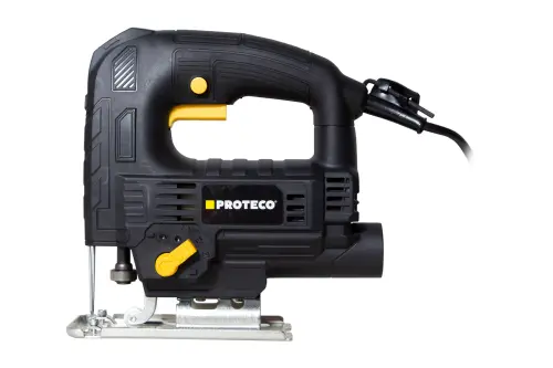 Pila Přímočará 550 W Proteco nabízí díky své nízké hmotnosti a snadné ovladatelnosti příjemný komfort při práci. Plynulá regulace otáček a hloubka řezu 65 mm. S pilou můžeme řezat a vyřezávat otvory ve dřevě a dřevovláknitých deskách, plastu nebo oceli. Pilové plátky snadno vyměníte díky rychloupínacímu držáku. Držák pilového listu umožňuje předkmit ve 3stupních. Nastavitelná ocelová základová deska vhodná pro šikmé řezy do 45°.