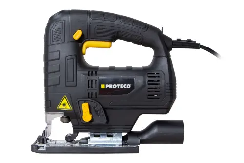 Pila Přímočará 800 W Proteco nabízí díky své nízké hmotnosti a snadné ovladatelnosti příjemný komfort při práci. Plynulá regulace otáček a hloubka řezu 85 mm. S pilou můžeme řezat a vyřezávat otvory ve dřevě a dřevovláknitých deskách, plastu nebo oceli. Pilové plátky snadno vyměníte díky rychloupínacímu držáku. Držák pilového listu umožňuje předkmit ve 3stupních. Pila obsahuje aretační páku pro rychlé nastavení úhlu podstavce vyrobeného z hliníkového odlitku, laserovou naváděcí linku a výstup pro připojení hadice odsávání.
