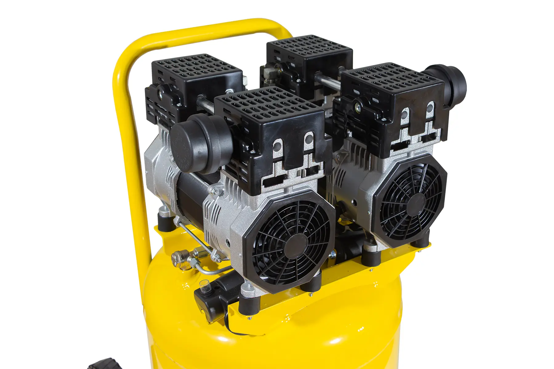 bezolejový tichý kompresor; 4-pístový; vertikální; výtlak 295 l/min; max. tlak 8 bar; příkon 1850 W; objem nádoby 50 l; nízké vibrace; prostorově úsporný; hmotnost 41,92 kg