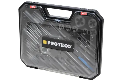 Závitníky a čelisti jsou vyrobeny z nástrojové oceli. Sada obsahuje závitové kruhové čelisti dle ČSN EN 22568 - M 3, 4, 5, 6, 8, 10 a 12, závitníky sadové dle ČSN 22 3010 - M 3, 4, 5, 6, 8, 10 a 12, vratidla pro kruhové čelisti, vložky do vratidel a vratidlo pro závitníky.