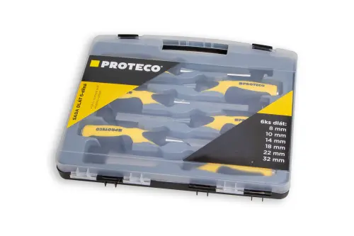 Sada dlát PROTECO vyrobených z kvalitní CrV oceli zaručující vysokou a přesnou kvalitu zpracování. Sada obsahuje 6 ks dlát (8, 10, 14, 18, 22, 32 mm). Mekčená rukojeť zajišťuje pohodlnou a dlouhotrvající práci s pevným úchopem. Čepele jsou přesně broušené pro maximální ostrost. Dláta disponují poniklovanou ocelovou údernou plochou, která je pevná a odolná.
