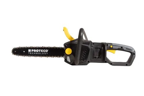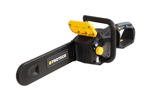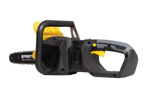 Akumulátorová řetězová pila PROTECO s délkou lišty 36 cm, je výborným pomocníkem při odvětvování stromů, rozřezávání kmenů, polen a také výrobě produktů ze dřeva. Bezuhlíkový motor poháněný dvěma akumulátory 20 V, poskytuje maximální kroutící moment a účinnost pro snadné řezání, dále zajišťuje tichý provoz a není omezován přívodními kabely. 36cm lišta PROTECO technology je vhodná i pro řezání větších polen. Rychlý mechanický a elektronický systém brzdy řetězu zaručuje vysokou bezpečnost. Mazání je prováděno automaticky. Napínání řetězu je prováděno pomocí otočného prvku na krytu řetězovky - není třeba žádné nářadí.