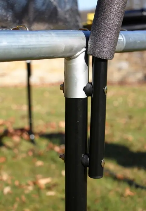 Rám = konstrukční ocel pozinková/lakovaná; Pružiny = vinuté pružiny z pružinové oceli; Odrazová a skákací plocha = umělá, vysokopevnostní vlákna; Kryt pružin = PU plachta s umělými vlákny |