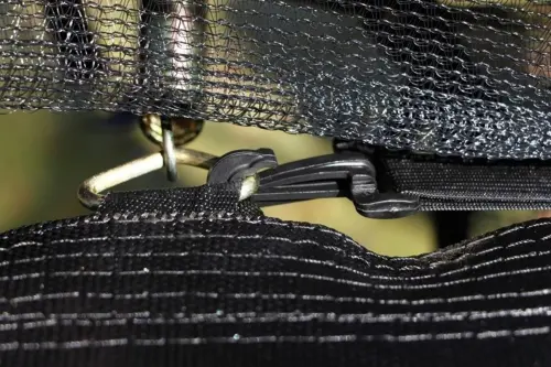 Rám = konstrukční ocel pozinková/lakovaná; Pružiny = vinuté pružiny z pružinové oceli; Odrazová a skákací plocha = umělá, vysokopevnostní vlákna; Kryt pružin = PU plachta s umělými vlákny |