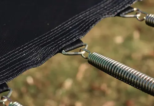 Rám = konstrukční ocel pozinková/lakovaná; Pružiny = vinuté pružiny z pružinové oceli; Odrazová a skákací plocha = umělá, vysokopevnostní vlákna; Kryt pružin = PU plachta s umělými vlákny |