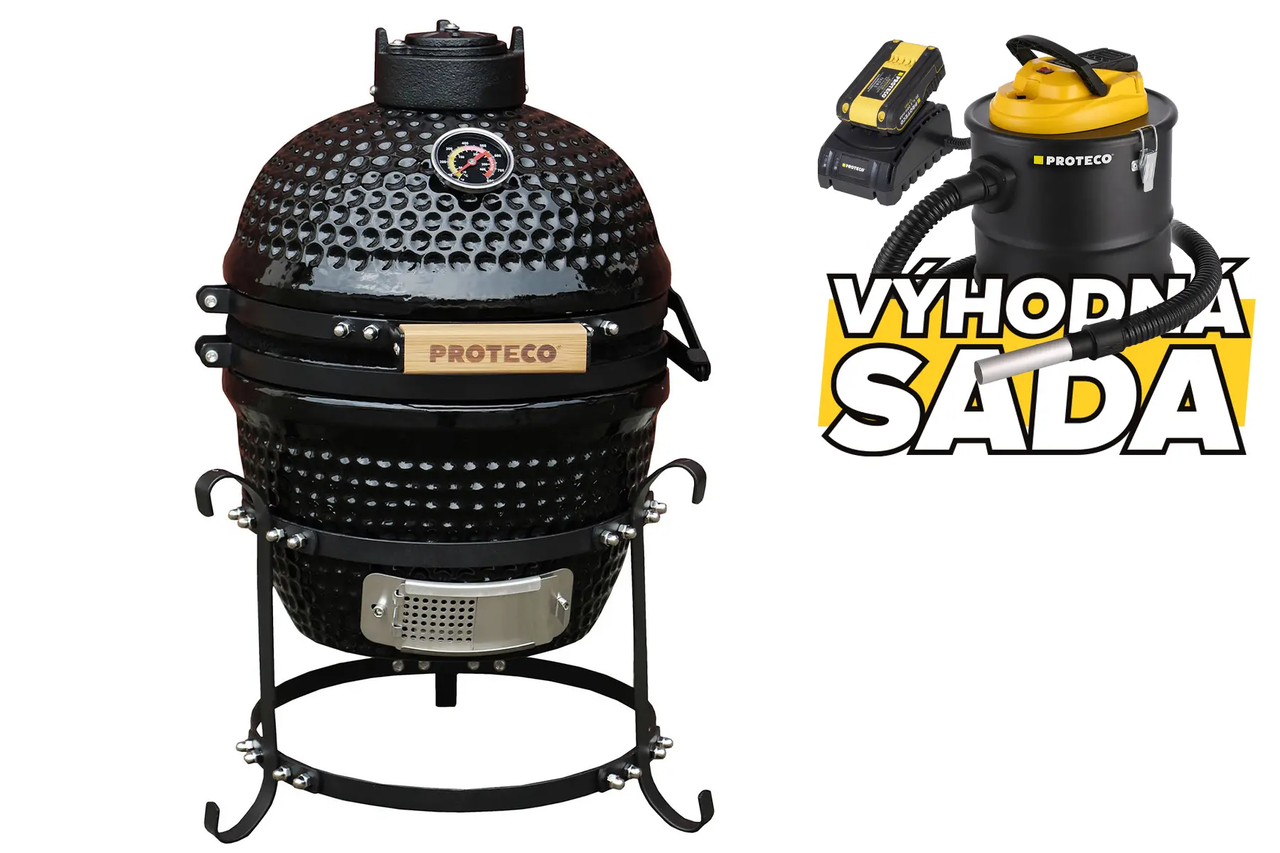 VÝHODNÁ SADA - Vysavač na popel AKU, nabíječka, akumulátor 2000 mAh; Na grilování, pečení, uzení! 32 x 57 x 45 cm, gril na dřevěné uhlí, zahradní, přenosný, materiál grilu keramika, 50° - 420 °C, tloušťka stěny 2 cm, grilovací rošt 27 cm, hmotnost 22