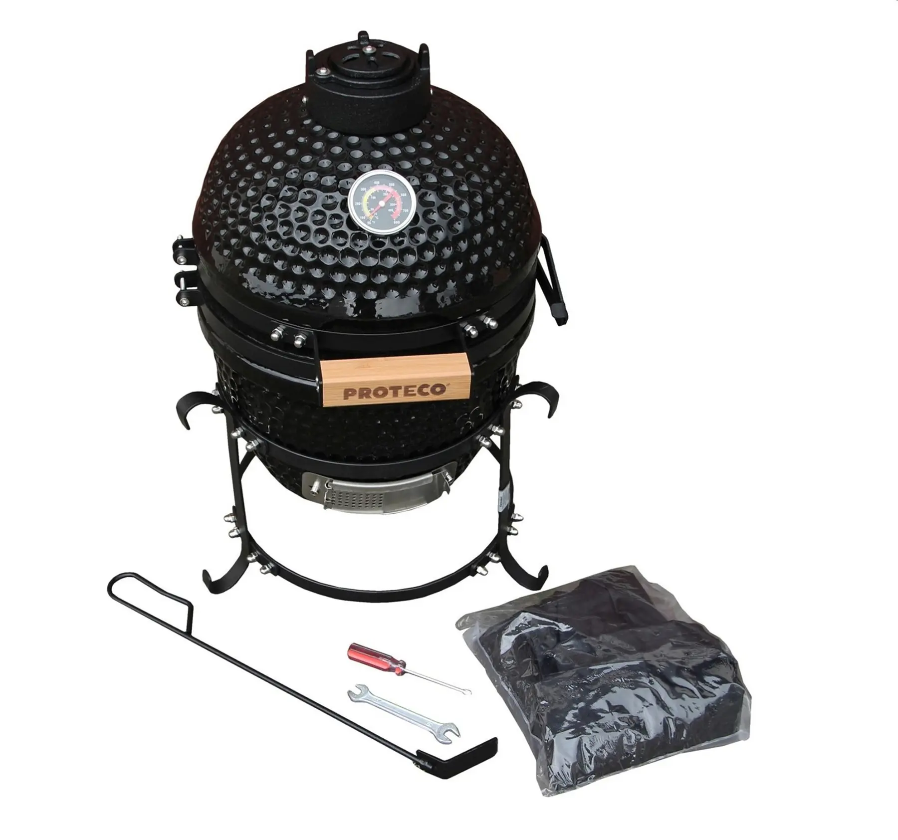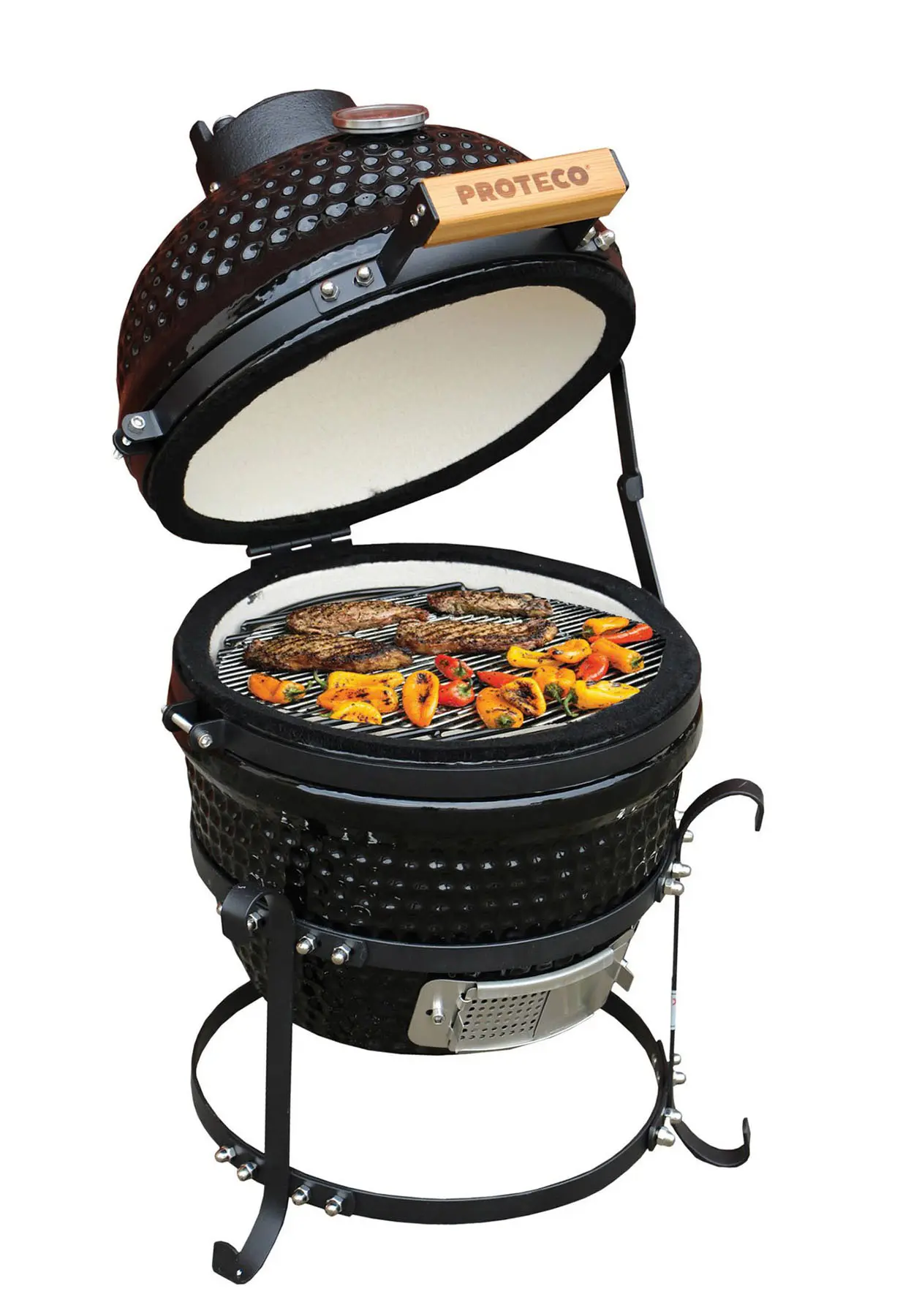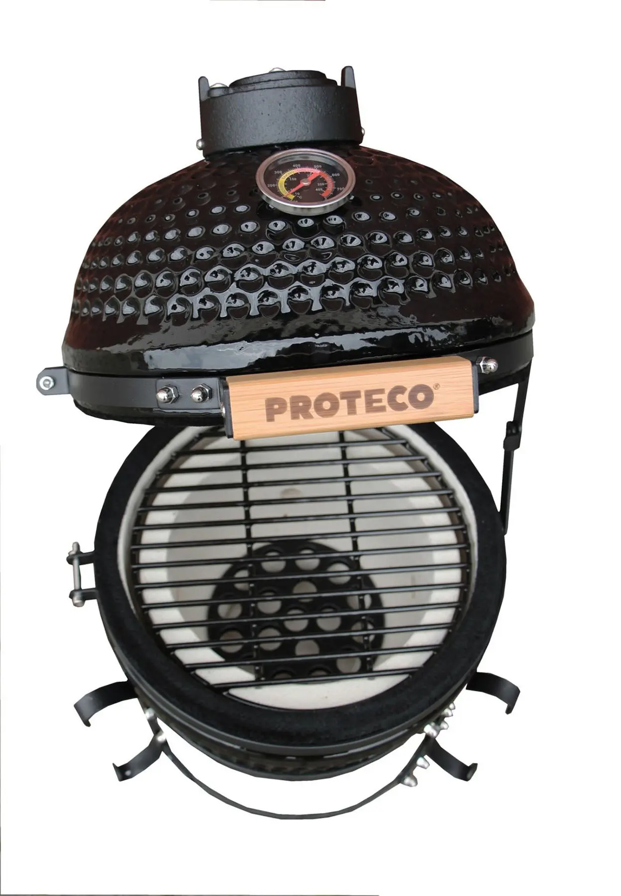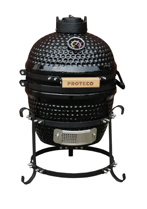 Keramický gril PROTECO 32 cm slouží k úpravě pokrmů těmito způsoby: uzení, grilování/pečení a nebo prudké pečení. Gril vyrobený z keramiky je tou nejlepší volbou pro venkovní přípravu pokrmů na dřevěném uhlí. Keramická vložka grilu má schopnost vysokého udržování vysoké teploty - stěny přijímají teplo a rovnoměrně jej rozdělují po celém vnitřku. Pomocí víka spotřebuje keramický gril mnohem méně paliva než obyčejné grily - až o 45° méně uhlí než běžný gril na dosažení teploty v rozmezí 50° - 420°C. Gril je samočistící. Jednoduše se zahřeje na 350°C, čímž se uvnitř vypeče tuk zbytky jídel.