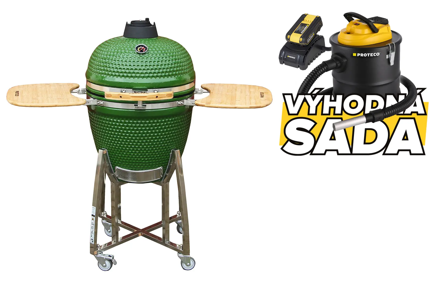gril keramický 55 cm ZELENÝ + aku vysavač + aku + nabíječka