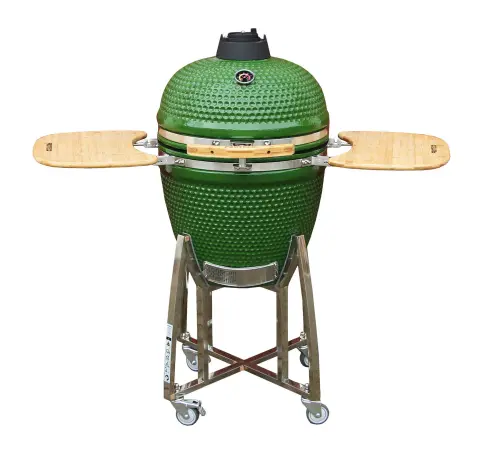Stylový a praktický keramický grill typu Kamado o průměru 55 cm a roštu 46 cm poslouží kromě grilování také jako skvělá zahradní trouba či udírna v jednom. Díky rychlému přenosu tepla po keramice lze v grilu vařit již po 15 minutách od rozhoření, přičemž následně dlouho udrží teplotu na požadovaném stupni. Přirozený porézní (porovitý) vnitřní materiál napomáhá k udržení vlhkosti v grilu, čímž vzniká neuvěřitelně šťavnaté a křehké jídlo s vůní po dřevě.