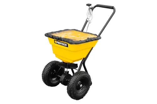 Posypový vozík PROTECO s prostornou násypkou o objemu 36 litrů je praktickým parťákem pro rovnoměrné a úsporné rozmetání posypových materiálů, který se vám bude hodit po celý rok. V zimních měsících se hodí pro aplikaci soli, písku nebo popela při boji proti namrzajícím chodníčkům, dlažbě a asfaltovým cestám. Během jarní a letní sezóny jej pak využijete při aplikaci granulovaných hnojiv pro trávníky, záhony i okrasné plochy, výsevu travních směsí nebo rozmetání dalších suchých sypkých materiálů.