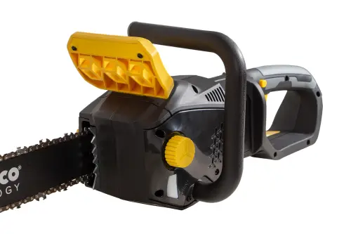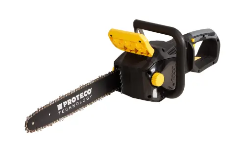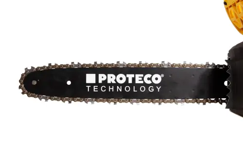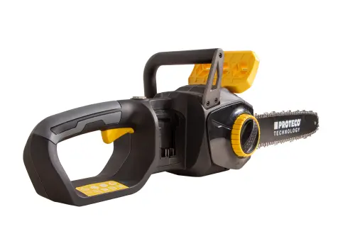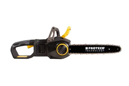 Zvýhodněná nabídka akumulátorové řetězové pily s 2 akumulátory 6000 mAh a duální nabíječkou. Akumulátorová řetězová pila PROTECO s délkou lišty 36 cm, je výborným pomocníkem při odvětvování stromů, rozřezávání kmenů, polen a také výrobě produktů ze dřeva. Bezuhlíkový motor poháněný dvěma akumulátory 20 V, poskytuje maximální kroutící moment a účinnost pro snadné řezání, dále zajišťuje tichý provoz a není omezován přívodními kabely. 36cm lišta PROTECO technology je vhodná i pro řezání větších polen. Rychlý mechanický a elektronický systém brzdy řetězu zaručuje vysokou bezpečnost. Mazání je prováděno automaticky. Napínání řetězu je prováděno pomocí otočného prvku na krytu řetězovky - není třeba žádné nářadí.
