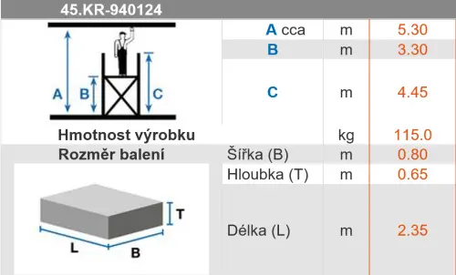 Alu pojízdné lešení Krause PROTEC; výška lešení 4,45 m; pracovní výška 5,3 m; výškově nastavitelná kola; 95 kg