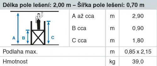 • Certifikát TÜV, zatížitelnost 200 kg/m2 dle DIN EN 1004-1