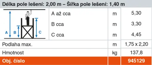 PROTEC XXL; široké provedení; výška lešení 4,45 m; pracovní výška 5,3 m; hmotnost 137,8 kg