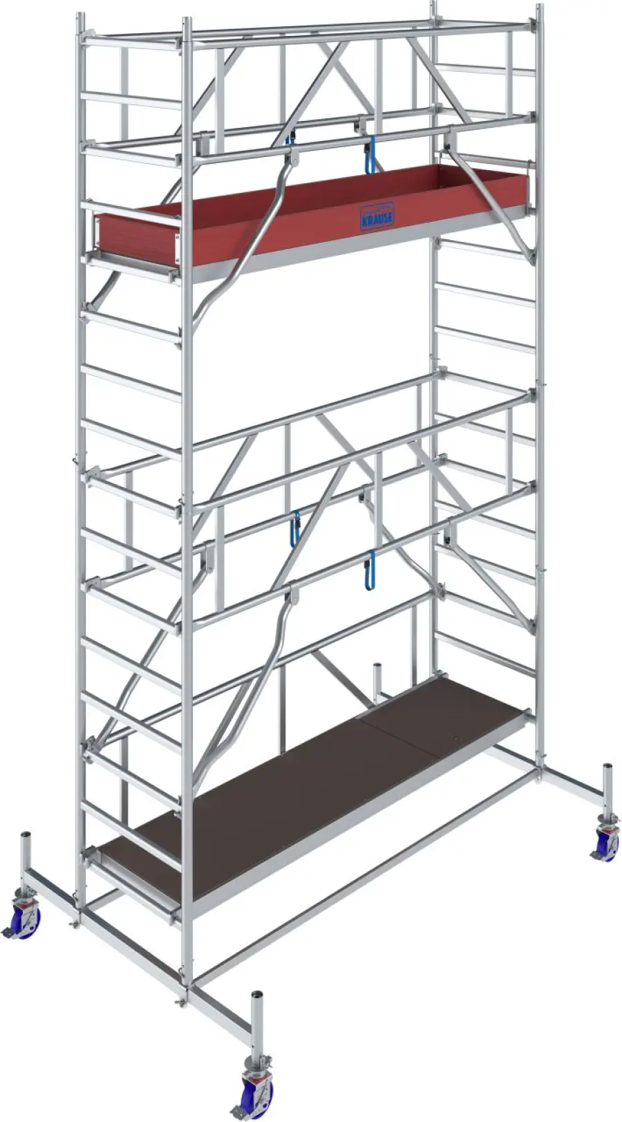 Klíčovým prvkem je GuardMatic-System, který umožňuje bezpečné upevnění zábradlí před montáží další plošiny – uživatel tak má kompletní ochranu proti pádu už při výstupu. Integrované diagonální výztuhy zajišťují stabilitu a rychlou montáž. Lešení je vybaveno samosvorným spojovacím systémem KRAUSE, který urychluje stavbu a demontáž bez použití nářadí.