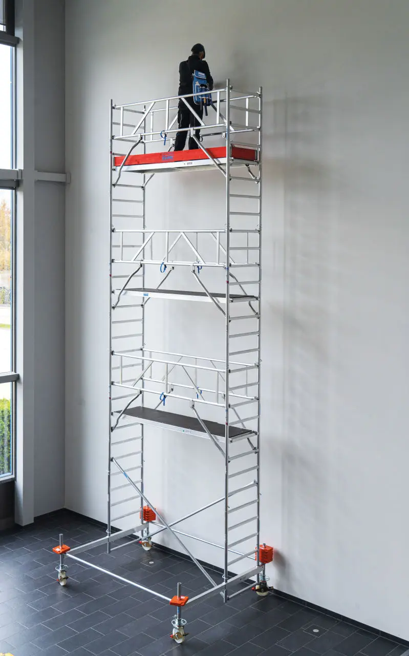 Profesionální lešení vhodné pro náročné práce ve výšce 13,50 m, poskytuje robustnost, flexibilitu a bezpečnost v duchu značky KRAUSE. Díky modulární konstrukci, snadné montáži a osvědčeným bezpečnostním prvkům je ideální volbou pro řemeslníky, stavby i profesionální servisní práce. Lešení splňuje normu DIN EN 1004-1, je TÜV testováno a patří do zatížitelnostní skupiny 3 s nosností 200 kg/m².