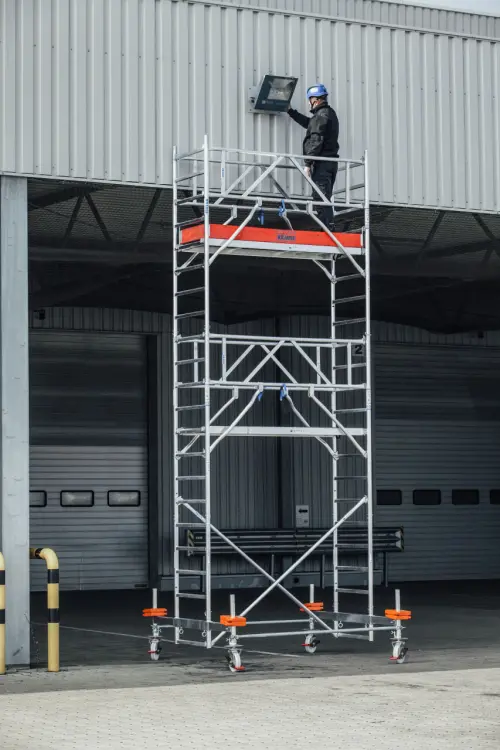 Profesionální lešení vhodné pro náročné práce ve výšce 9,50 m, poskytuje robustnost, flexibilitu a bezpečnost v duchu značky KRAUSE. Díky modulární konstrukci, snadné montáži a osvědčeným bezpečnostním prvkům je ideální volbou pro řemeslníky, stavby i profesionální servisní práce. Lešení splňuje normu DIN EN 1004-1, je TÜV testováno a patří do zatížitelnostní skupiny 3 s nosností 200 kg/m².