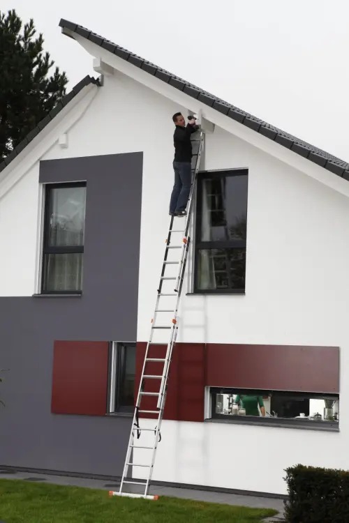 Díky promyšlené konstrukci nabízí čtyři funkce v jednom – lze jej použít jako opěrný, výsuvný, samostatný (dvoják) nebo dvoják s vysunutým třetím dílem. Jeden žebřík tak zvládne práci doma, na zahradě i na stavbě.