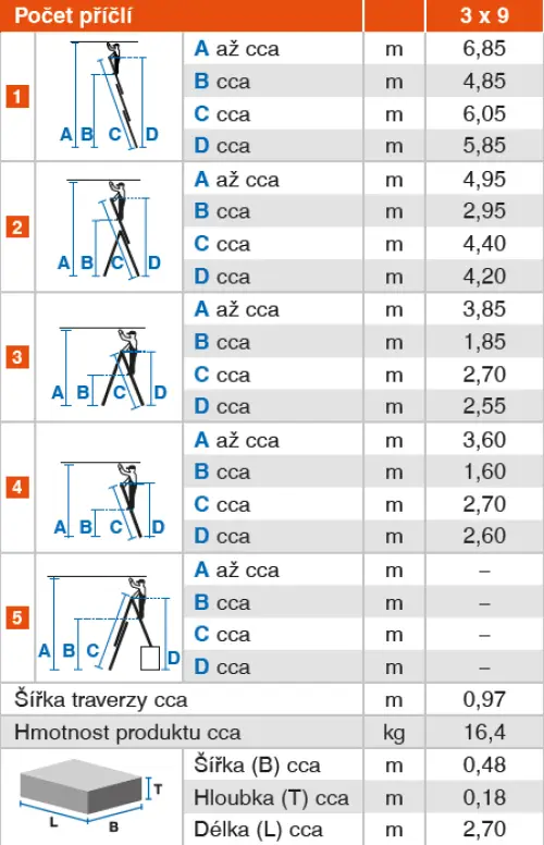 3x9; výška 270/440/605 cm; funkce 4v1; 16,3 kg