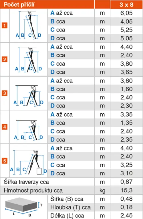 3x8; výška 240/380/525 cm; funkce 4v1; 15,3 kg